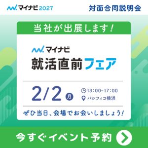 2026年2月2日(月)に、「マイナビ就活直前フェア」に出展します。